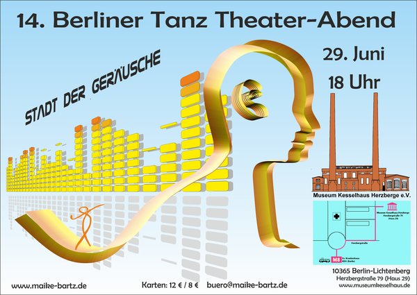 Livemusik, Tanz, Schauspiel und Gesang werden unter Leitung von Maike Bartz, Künstlern und Laiendarstellern nach ausführlicher Recherche zu dem Thema „Stadt der Geräusche“ in Stückform gebracht und dargeboten. Ausstellung mit Bildern von Heinz-Hermann Jurczek zum Thema. „Wir knüpfen bewußt Verbindungen zwischen den unterschiedlichsten künstlerischen Ausdrucksformen da sie sich gegenseitig bereichern und inspirieren. Außerdem wollen wir den Austausch zwischen den Generationen, den verschiedenen Kulturen, professionellen Künstlern und in ihrer Freizeit künstlerisch aktiven Menschen anregen.“ „…das Leben bekommt mehr Farbe durch die Kunst. Besonders wenn man sie teilt (sich mitteilt) und in Kommunikation tritt, kann etwas Neues und Einzigartiges entstehen…“ Maike Bartz