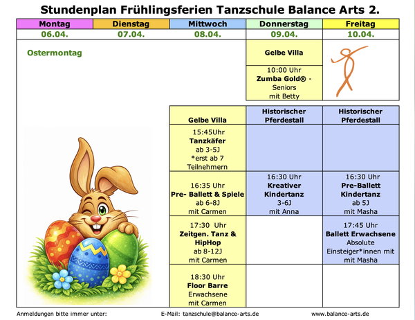 - Ballettklassen für Kinder ab 5Jahre und ab 8 / 12Jahre - Anmeldungen per E-Mail.